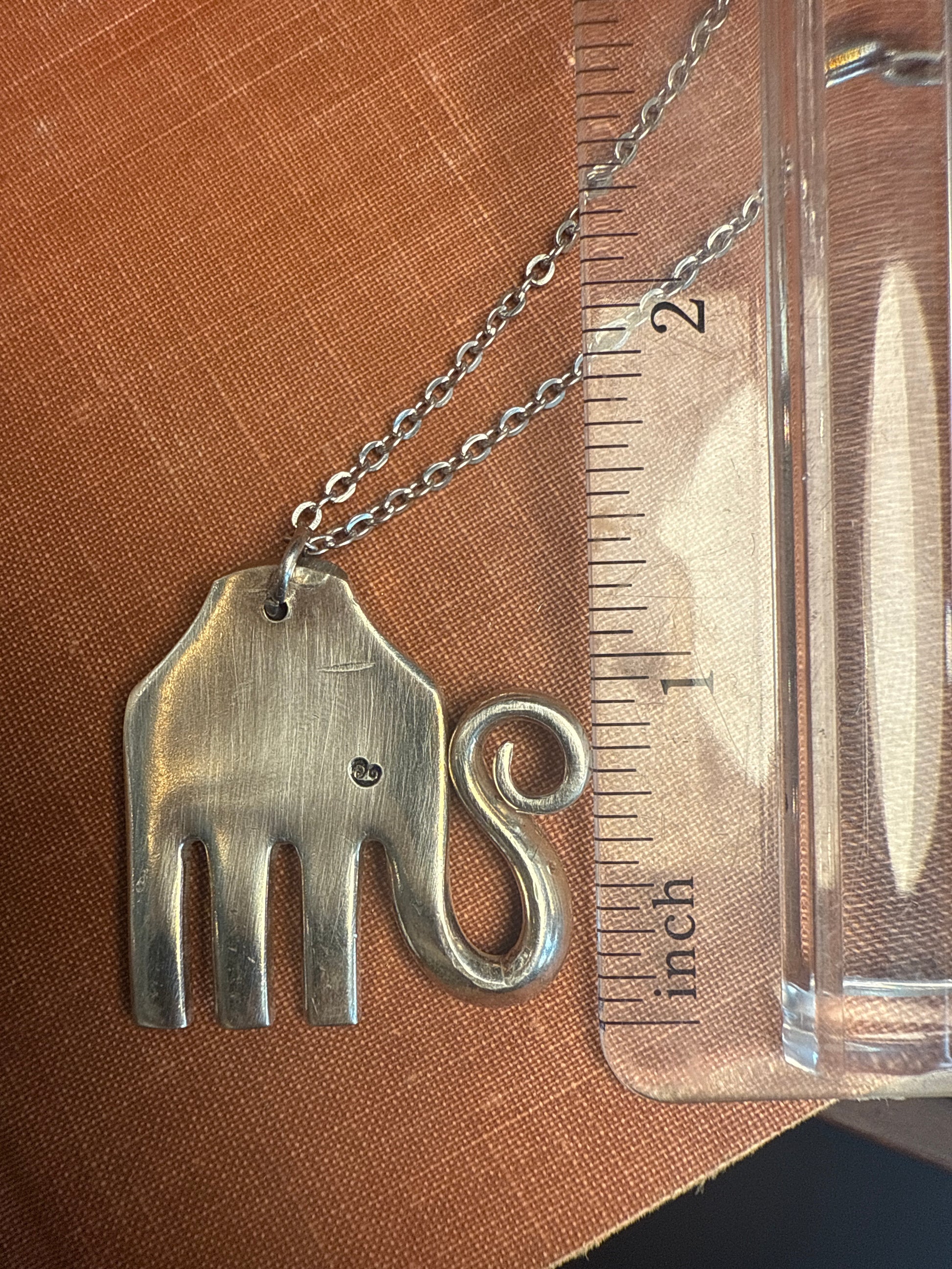 Silver plate, elephant, fork necklace on 24 inch stainless steel chain.