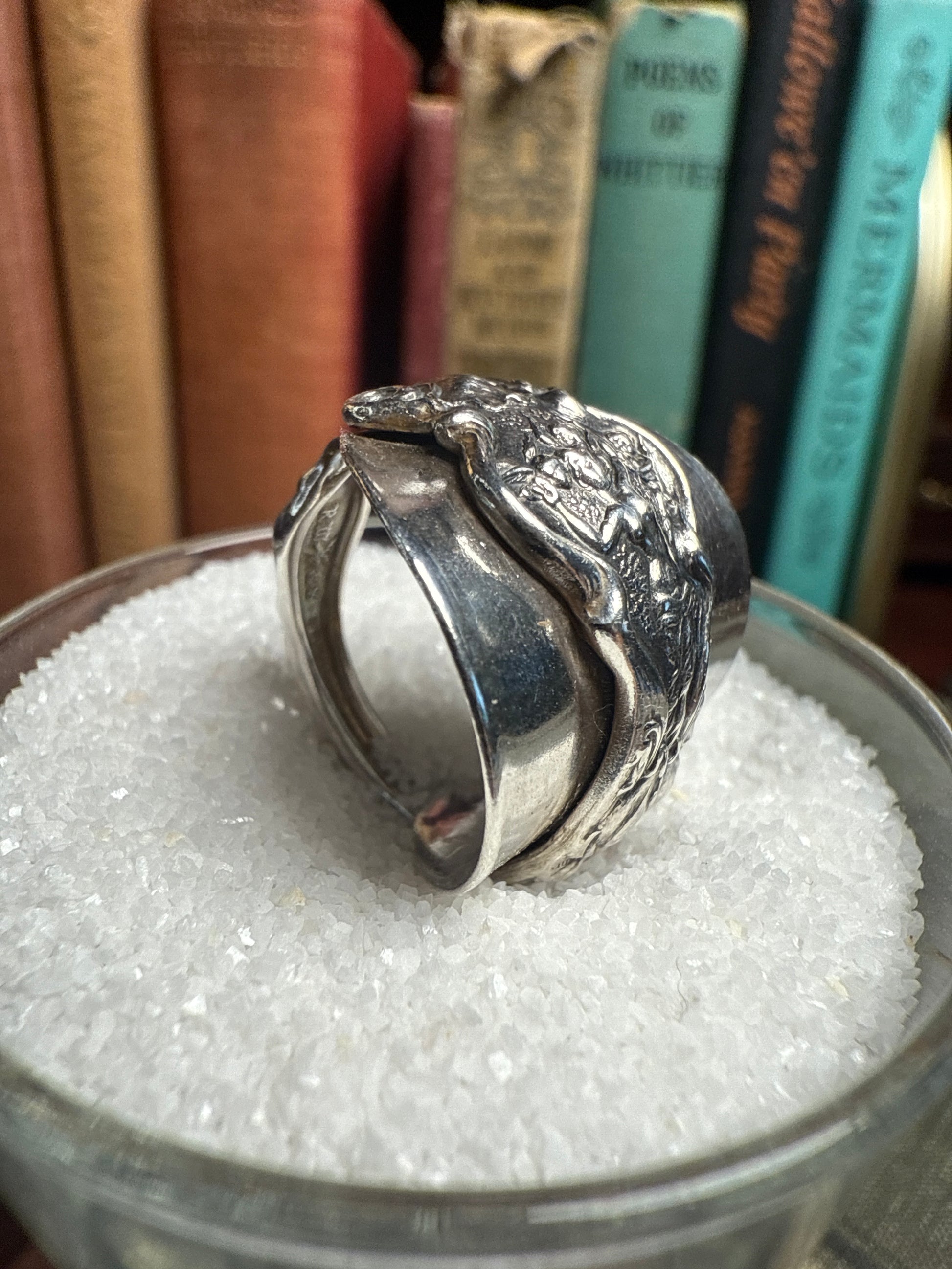 Sterling silver wrap ring in the pattern Irian By Wallace Sterling from 1902. This ring is a size 7 1/2, but can be resized by contacting me before purchase.