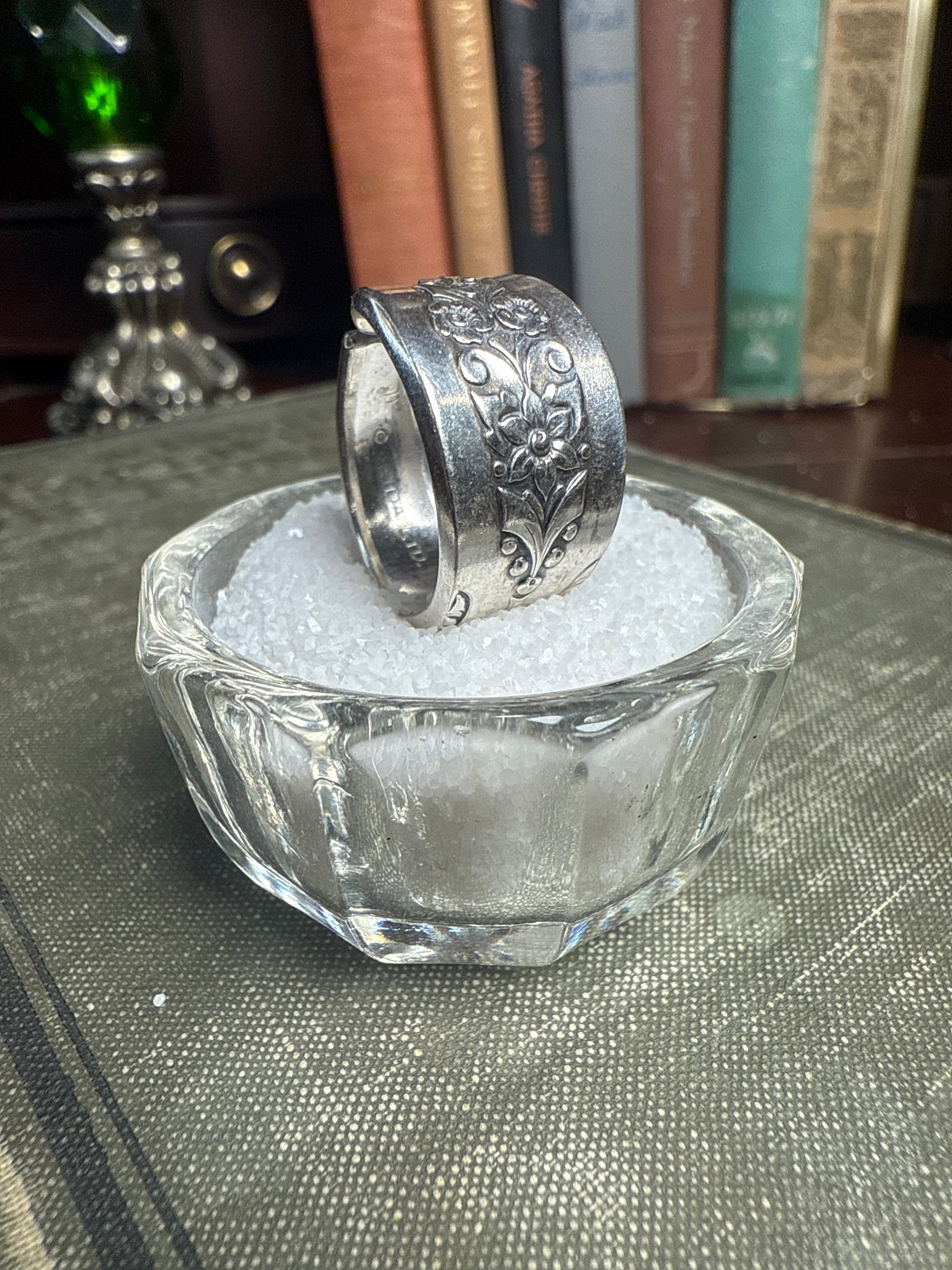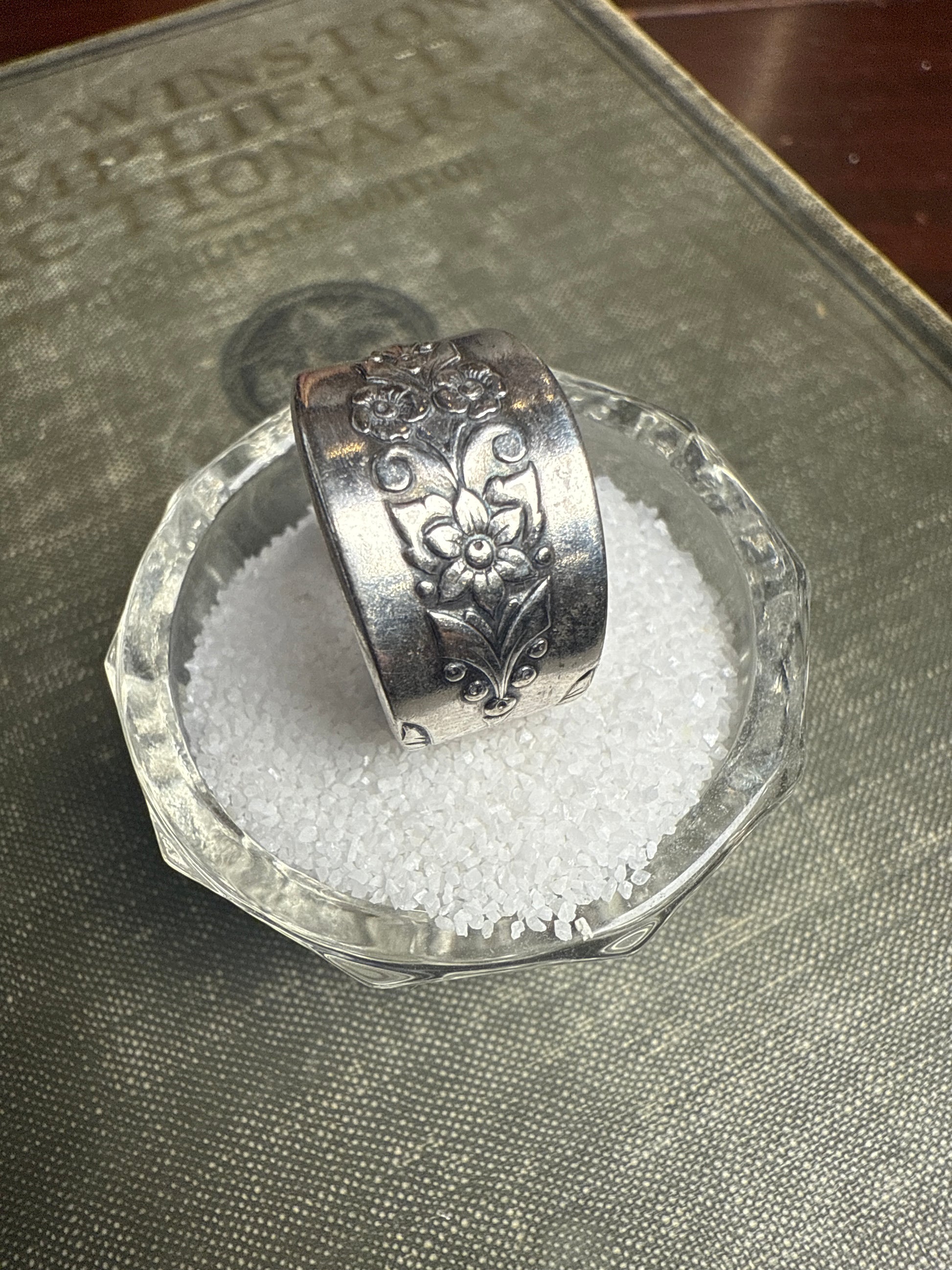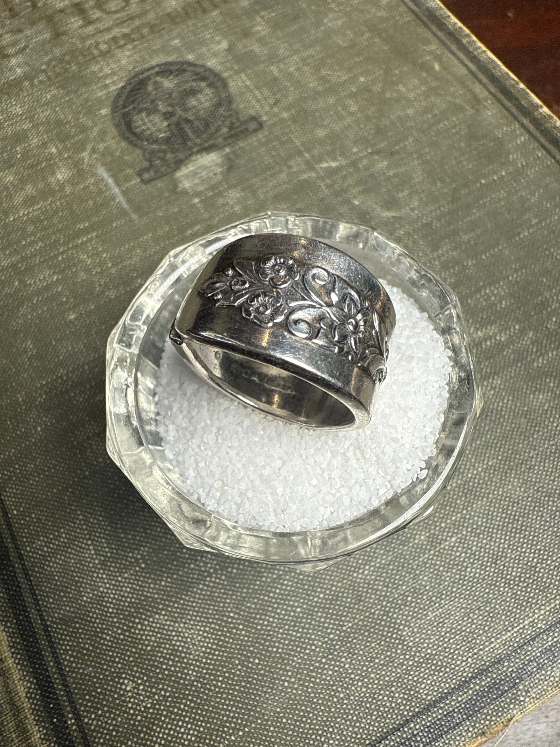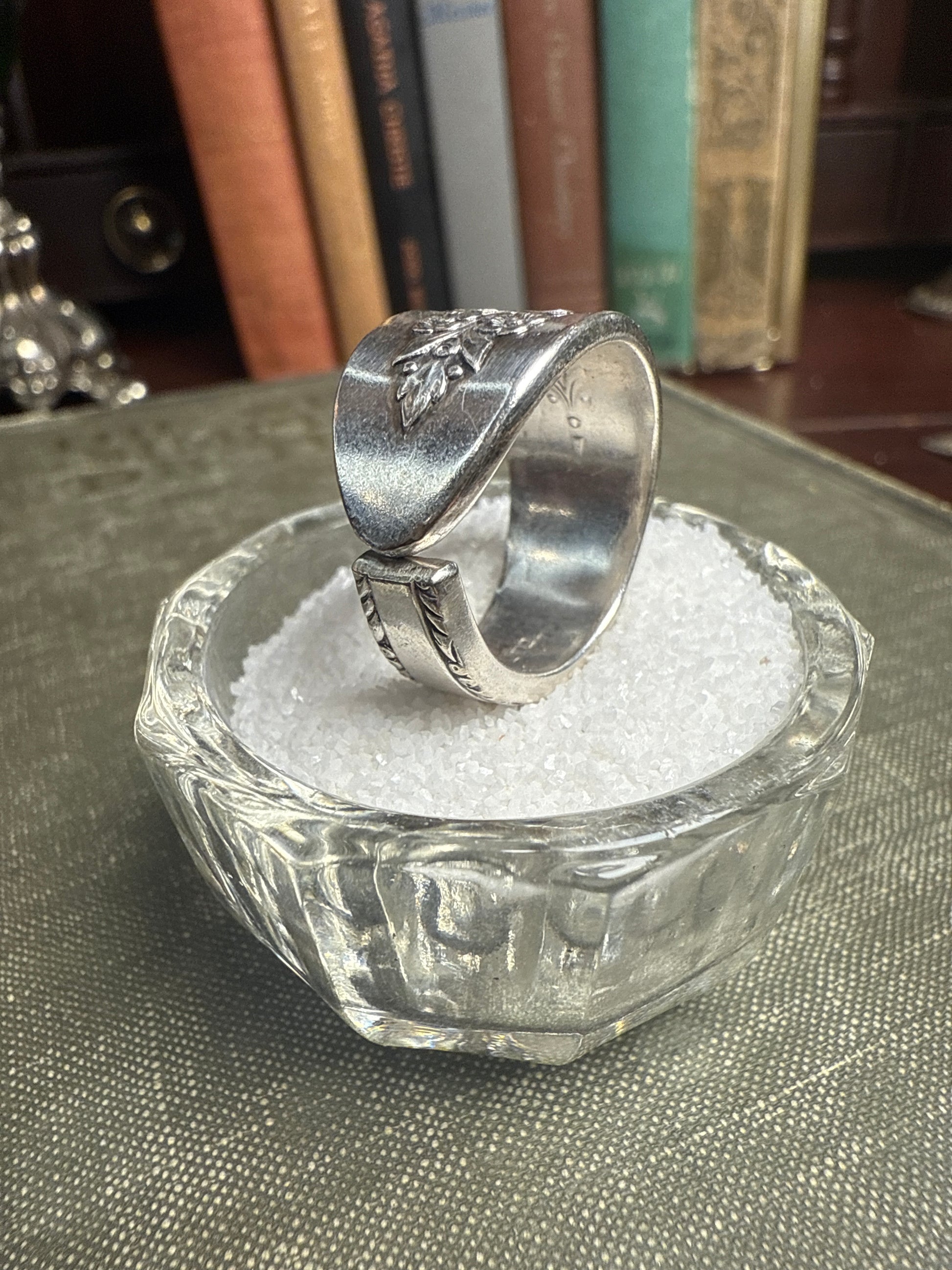 Silver plate spoon ring from the pattern Lady Stewart from 1949.