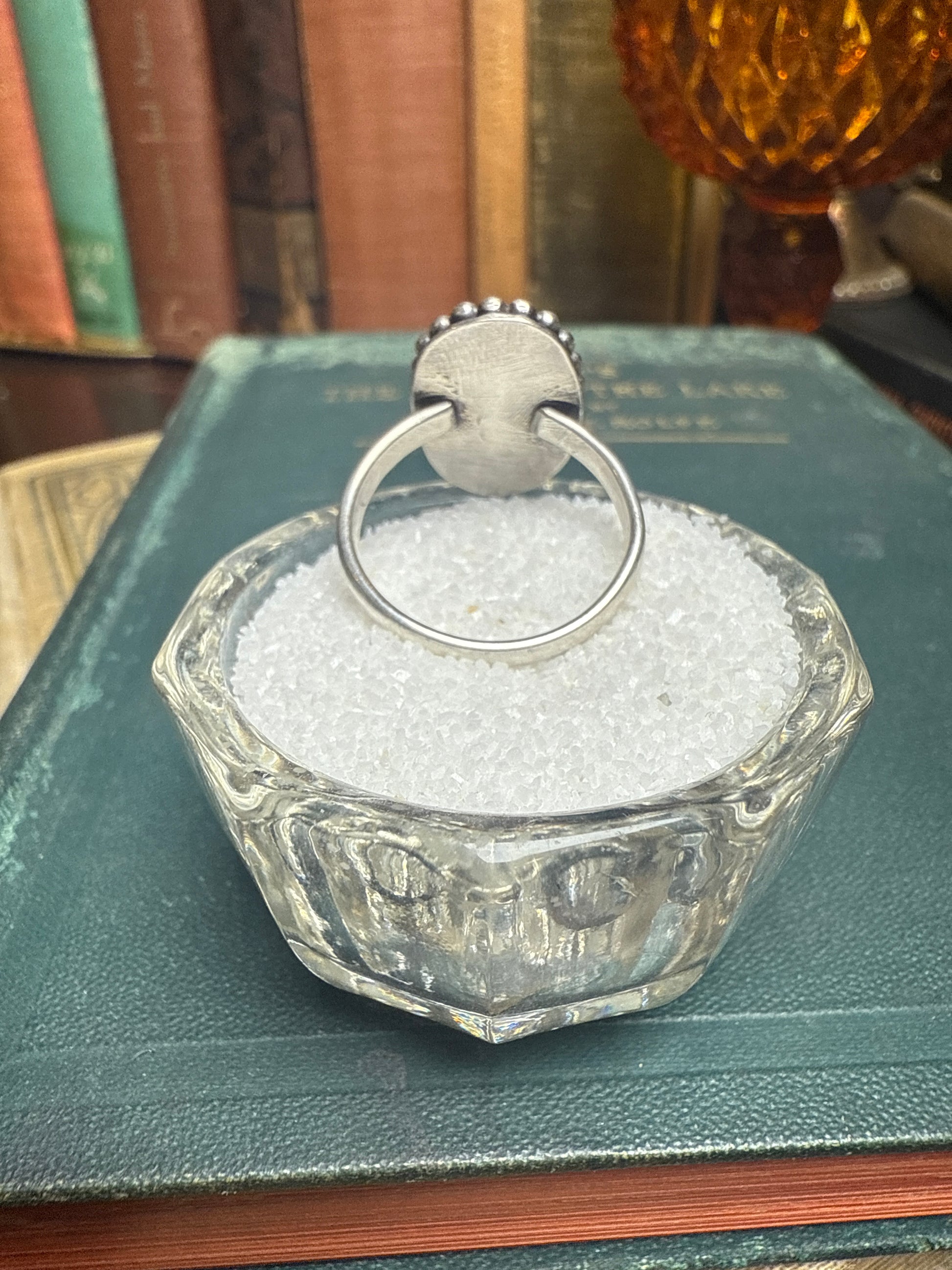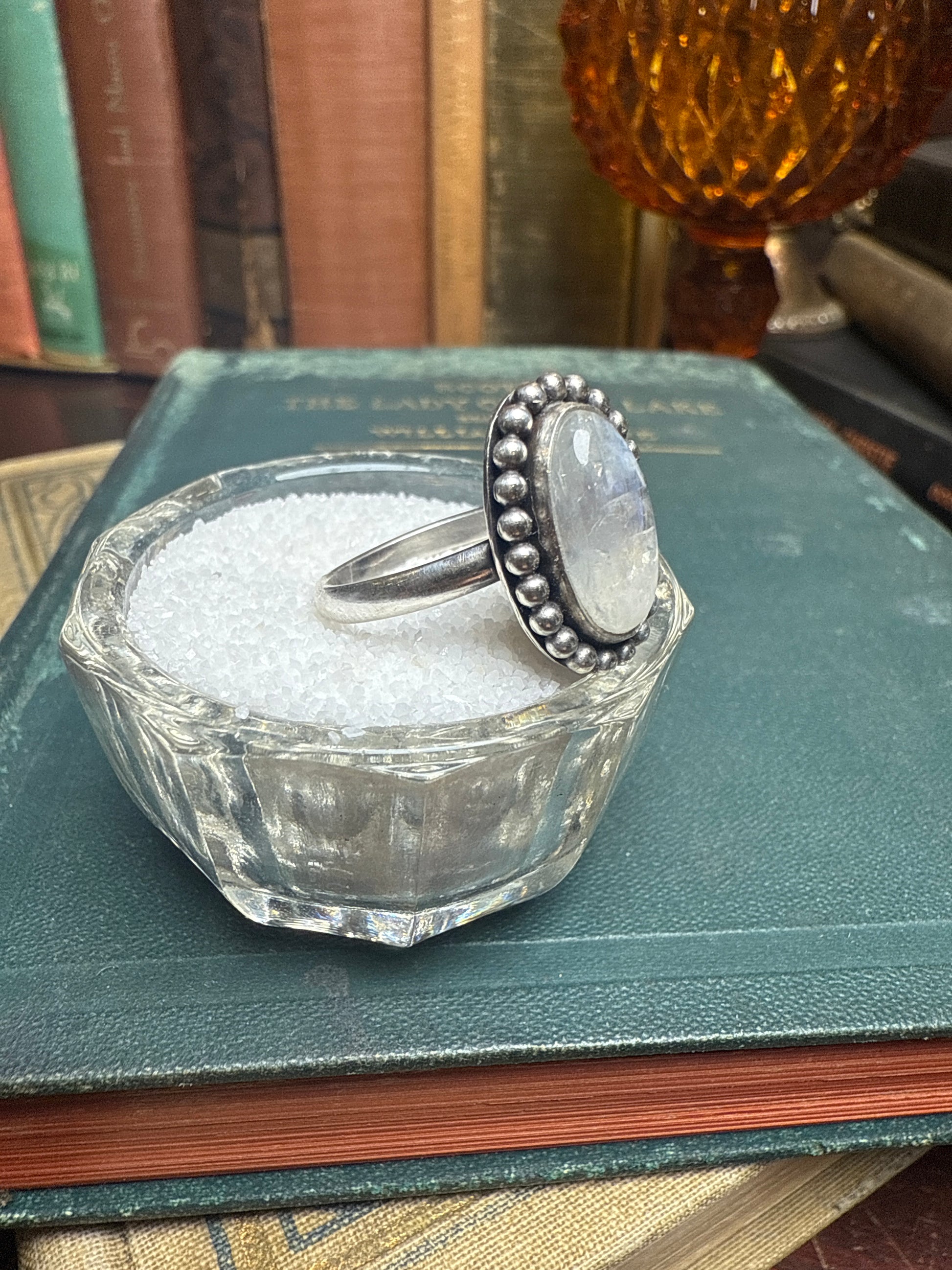 Moonstone set in Sterling silver, size 8.