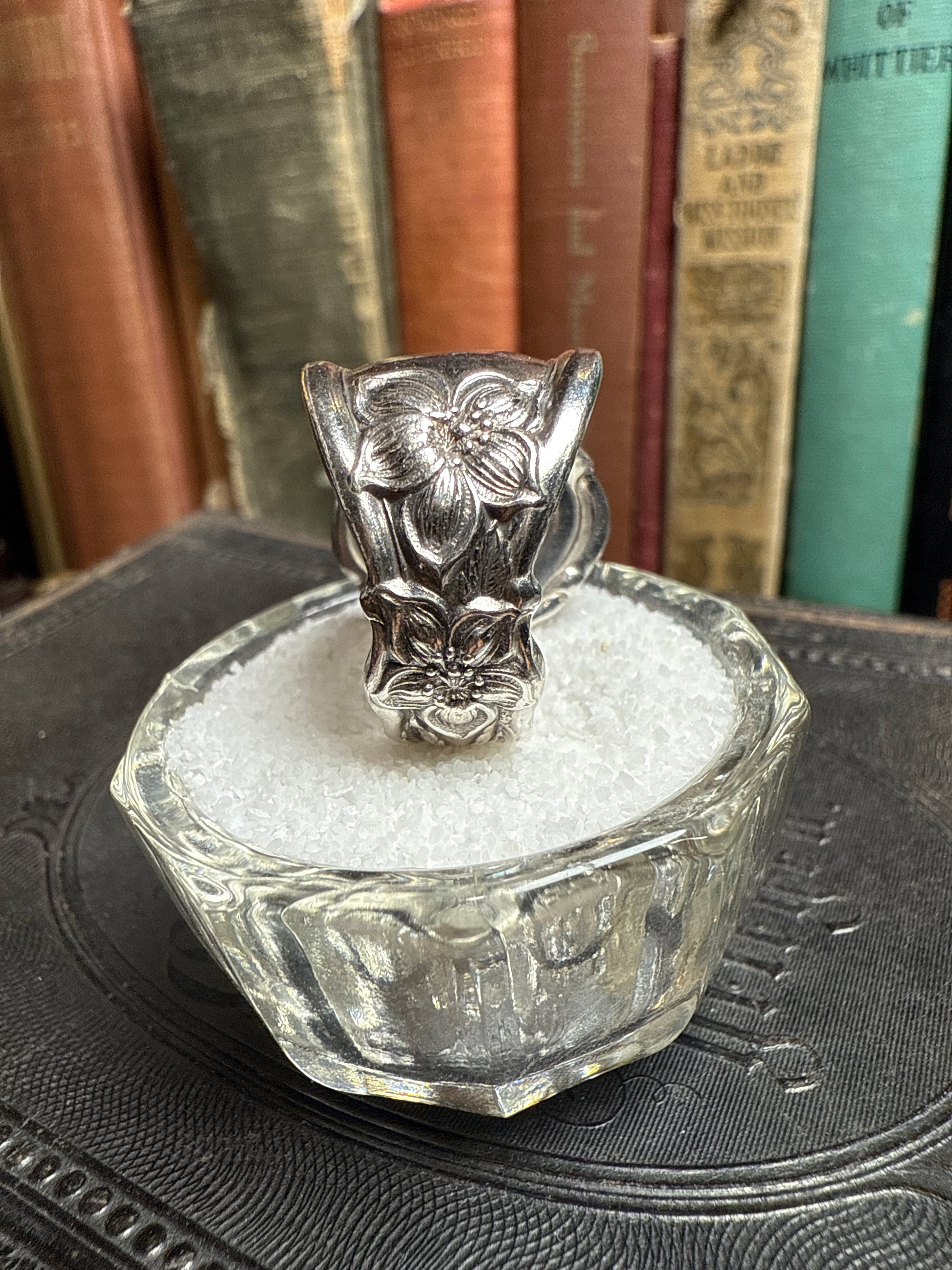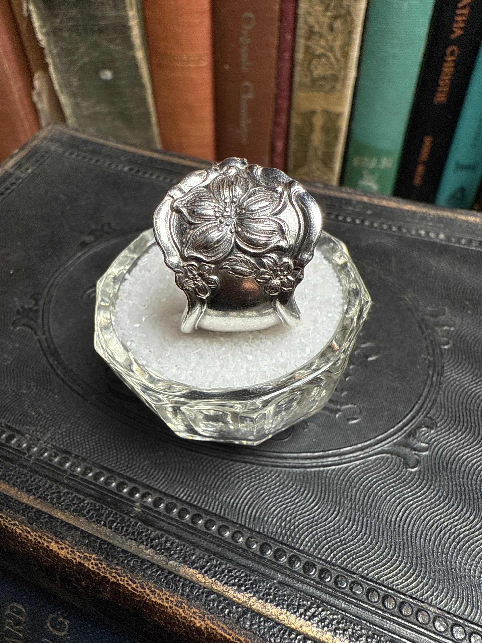 Silver plate ring made from the pattern Orange Blossom from 1910.