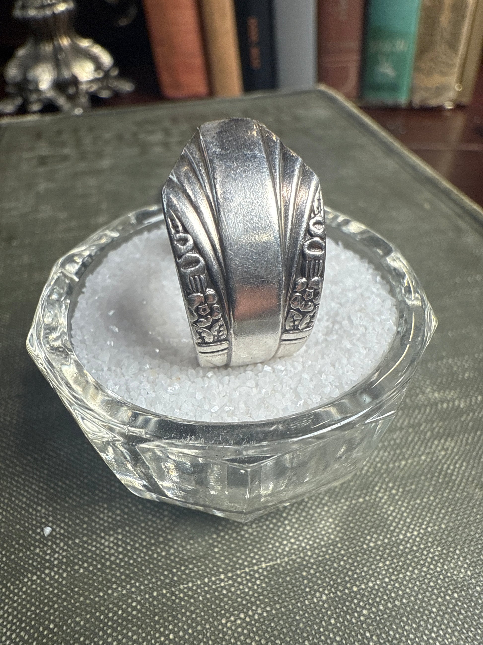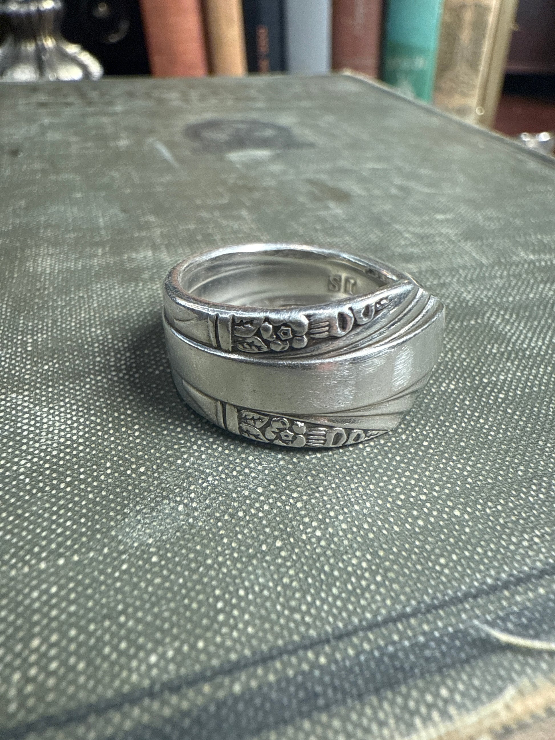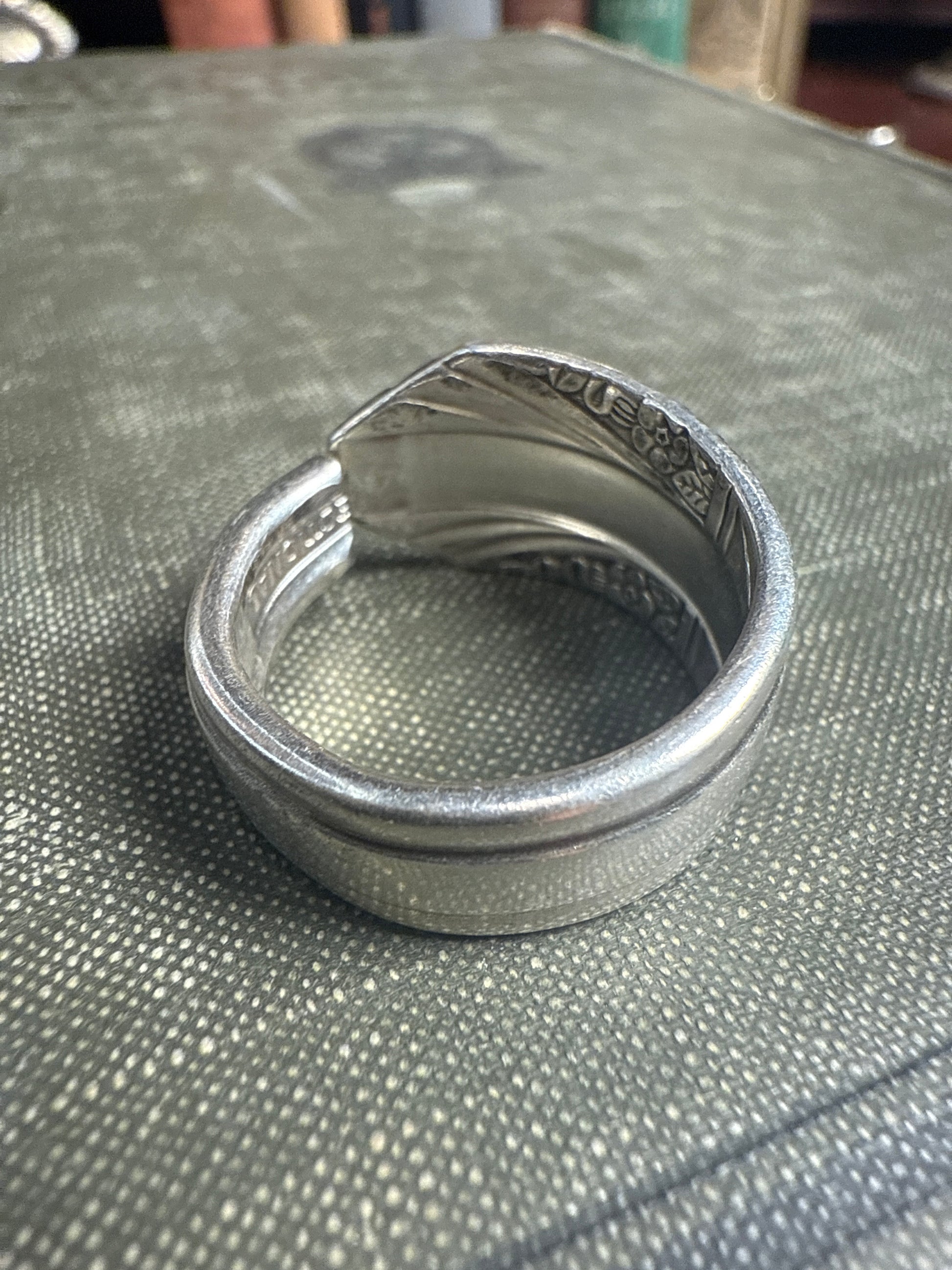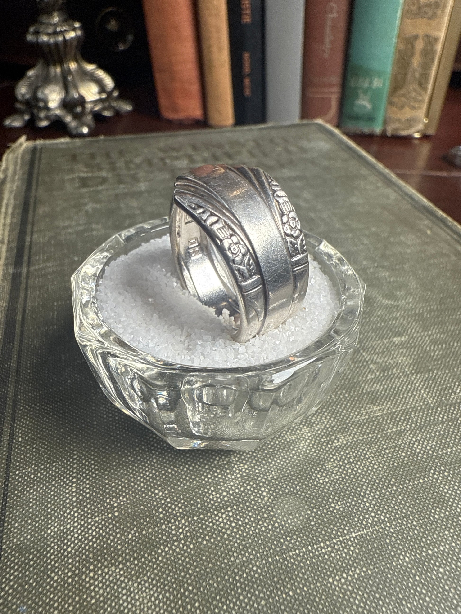 Silverplate spoon rings made from the pattern Rosalind from 1938.